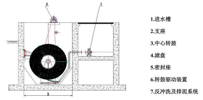 圖為纖維轉(zhuǎn)盤過濾器的安裝布置示意 七、纖維轉(zhuǎn)盤濾池|纖維轉(zhuǎn)盤過濾器設(shè)備故障及排除方法